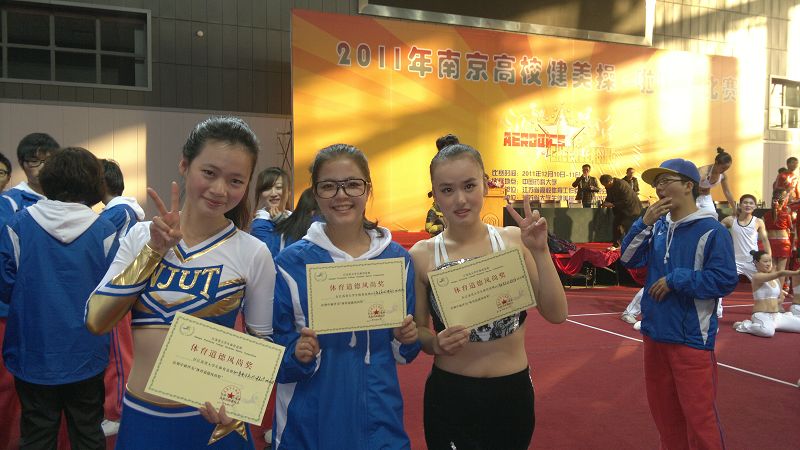 12月11日,在宁高校大学生健美操、啦啦操比赛在中国药科大学江宁校区举行,我校大学生健美操队在王佳玥、薛敏老师等率领下,取得了四项优异成绩,分别荣获了2011年南京高校健美操、啦啦操比赛《健美操大众锻炼标准》三级套路二等奖、舞蹈啦啦操自编套路三等奖、 技巧啦啦操规定1级套路一等奖和2011年南京高校健美操、啦啦操比赛团体二等奖,充分地展示了我校大学生风采,为我校争取了荣誉。(来自体育部)