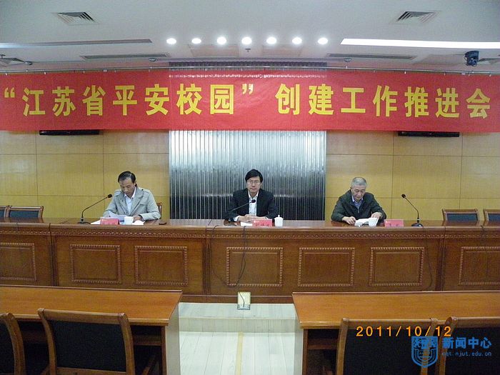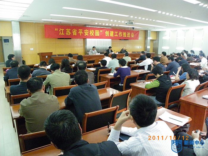 10月12日下午,在逸夫图书馆五楼报告厅,学校召开了“江苏省平安校园”创建工作推进会,副校长刘伟庆、校长助理李彬出席会议并发言,校园治安综合治理委员会全体成员及有关人员参加了会议,会议由保卫处处长朱兴同主持。