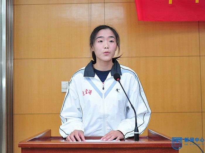 垒球队队员、经济与管理学院工商管理专业张洁婵同学代表运动员发言。