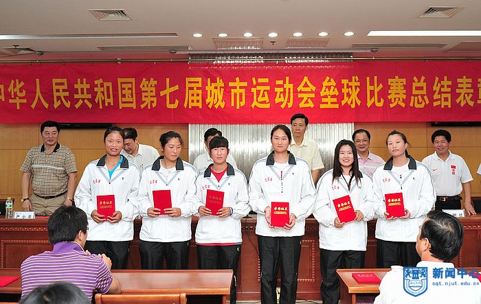 首先,副校长朱跃钊宣读了南京工业大学文件“关于给予校江苏女子垒球队和教练员、运动员表彰的决定”,授予校江苏女子垒球队为“校先进集体”的荣誉称号,给予宋秋元等25位同志为“校先进工作者”的荣誉称号,希望获表彰的同志在今后训练和比赛中再接再厉,不断进取,为我校和江苏垒球事业发展做出新贡献,力争在2013年的第十二届全国运动会上再创辉煌。