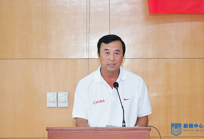 江苏省体育局副局长周旭讲话中感谢学校和常州市体育局对这支垒球队的关心和支持,祝贺垒球队取得的优异成绩。周副局长高度评价了我校在江苏和中国垒球运动发展上所做出的贡献,曾经2003年在第七届世青赛中创造了“三个第一”和“三个最”。这次成绩的取得体现在三个方面:一是改革的成果,是竞技体育发展方式的转变,体教结合发挥了双重优势,提升了运动员综合素质,解决了运动员的后顾之忧。二是全体队员刻苦训练、科学训练的结果,是一支特别有战斗力的队伍。三是南京工业大学历届领导和职能部门的大力支持和关心分不开。希望队伍全体同志在取得成绩后认真总结,寻找存在不足,确立今后努力方向,切不可骄傲自满,做到一切从零开始,加强队伍作风建设,争取在以后比赛中在竞技成绩和道德风尚上继续获得双丰收,力争在2013年第12届全运会上取得更好成绩。