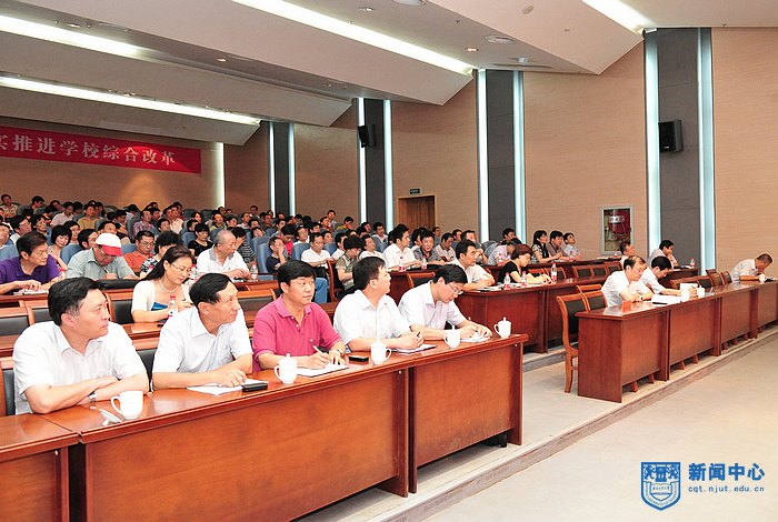 校党委书记王德明代表学校党委行政简要回顾了上半年工作,并对当前的高等教育新形势和学校面临机遇与挑战进行了总结和分析。他指出,当前和今后一段时期我们的重要任务是:要深入学习胡锦涛总书记在纪念中国共产党成立90周年大会和庆祝清华大学建校100周年大会上的重要讲话精神,继续贯彻好国家、江苏中长期教育改革发展规划纲要,启动实施学校“十二五”规划,全面推进学校综合改革。他对下半年工作强调了五点要求。