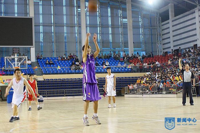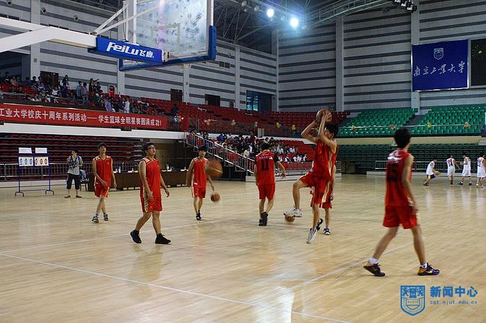 5月11日晚,由体育部和校团委共同主办、校学生会和大学生篮球俱乐部承办的校庆学生体育系列活动之一的2011年“闪耀工大”篮球全明星赛在江浦校区体育馆举行,出席本次活动的嘉宾有:校团委书记童毛弟老师,体育部党总支书记陈建华老师,体育部副主任张天峰、侯桂明老师、校团委副书记冷庆丰老师和吴杰老师等。校大学生明星球员和教工篮球队队员为大家展示了精彩绝伦的球技。明星球员分别来自各个学院的超级篮球高手,秉承了校学生会的口号“鹰一样的个人,雁一样的团体。”各院明星球员们分为“翔鹰”与“鸿雁”两队。