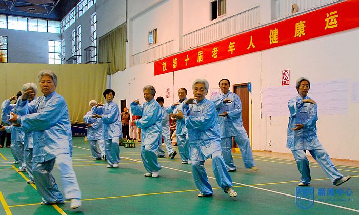 在开幕式上,老同志还进行了“健康•快乐”主题活动之部分晨练项目木兰扇、太极拳、太极剑以及老年大学民族舞的汇报表演。