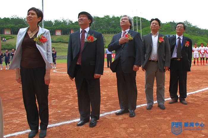 5月21日下午,作为校庆系列活动之一的“2011年国际大学生垒球邀请赛暨“中国垒球教学培训基地”揭牌仪式”在我校江浦校区主垒球场隆重举行。出席仪式并观看比赛的领导和嘉宾有:国际垒球联合会副主席、国家体育总局手曲棒垒球管理中心副主任江秀云女士、大韩民国垒球协会会长金钟海先生、中国垒球协会副主席、副校长朱跃钊教授、校党委副书记、副校长高明教授、韩国尚志大学体育部部长尚志大学垒球队领队崔明洙教授、江苏省体育局竞技处副处长严小平、常州市体育局副局长堵文波及校学生工作处处长何学军、校团委书记童毛弟和体育部党政领导等。