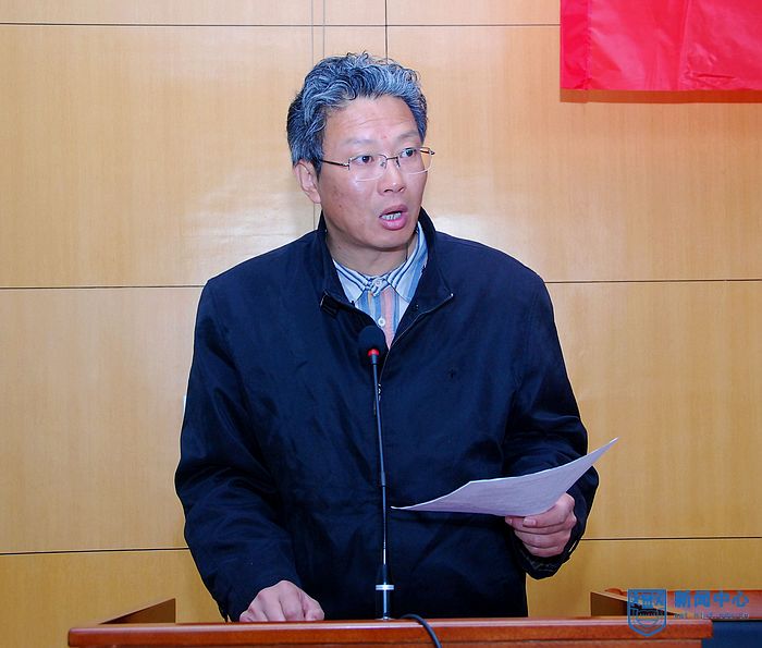 学生工作处处长何学军宣读“关于2010年‘阳光长跑•祖国万里行’冬季长跑活动先进集体和优秀个人的表彰决定”。