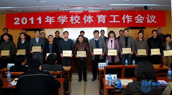 3月25日上午,学校在江浦校区逸夫图书馆五楼会议室召开2011年体育工作会议,会上总结和回顾了2010年全校体育工作,部署2011年体育工作,对校第九届运动会准备工作进行专题布置,同时表彰了2010年度体育工作14个先进集体和55位先进个人、优秀教练员以及2010年“阳光长跑•祖国万里行”冬季长跑活动涌现出来的10个先进集体和60位优秀个人。校体育运动委员会主任、党委副书记、副校长高明,副校长张进明,校体育运动委员会副主任、委员及受表彰的先进集体和个人代表等参加了会议。会议由体育部党总支书记陈建华主持。
