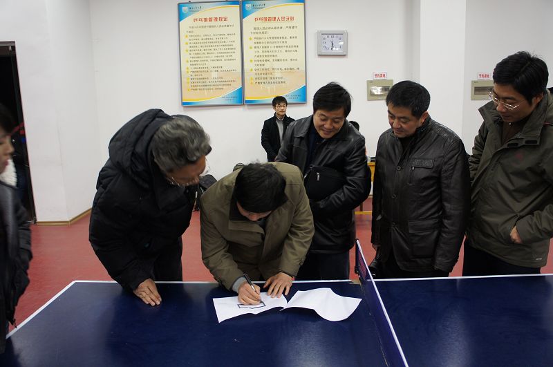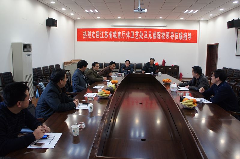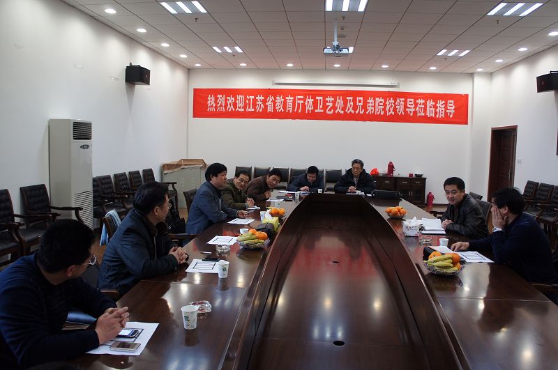 12月24日下午,江苏省教育厅体卫艺处李海宁副处长率领东南大学体育部副主任、江苏省校长杯乒乓球赛总裁判长蔡晓波一行,前来我校江浦校区检查并指导明年校长杯乒乓球赛事的筹备工作。副书记、副校长高明,校党政联合办主任缪克明、校长办公室副主任秦卫明、学生处处长何学军、校团委书记童毛弟、副书记冷庆丰、体育部党政班子等一起参加了座谈。