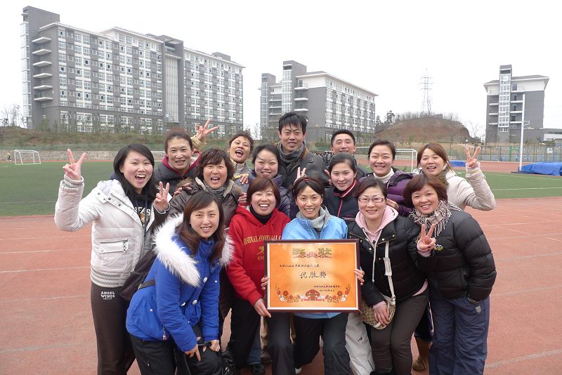 为纪念三八国际劳动妇女节,由学校工会组织的拔河比赛在江浦校区田径场举行,体育部工会积极组织了教职工参加比赛,参加比赛的教职工分别是于丙德、於鹏、胡琴、李佳静、曹婧、汤赟、贡新烨、张海涛、薛敏、严燕等10人组成。分工会还成立了周爱东、陈晓妍、陈晓霞、王佳玥、李潇颋、钟 锵、成一祥等教师担任的拉拉队。最终体育部获得校教职工拔河比赛优胜奖,比赛结束后又与校部机关进行了友谊比赛。(来自体育部)