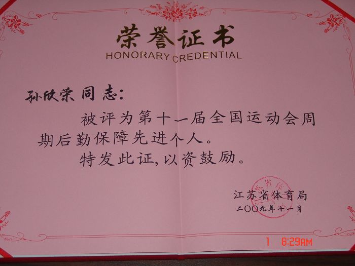 近日,校体育部获得了省体育局的表彰,被评为“第十一届全运会周期后勤保障先进集体”称号,体育部孙欣荣同志获得了“后勤保障先进个人”称号,这再一次对我校和江苏省体育局联合组建南京工业大学江苏女子垒球队所取得成绩的肯定,相信这支队伍在下一周期内,在备战第十二届全运会过程中,更加努力,创造出更好的成绩,为江苏人民和南京工业大学争光。(来自于体育部)