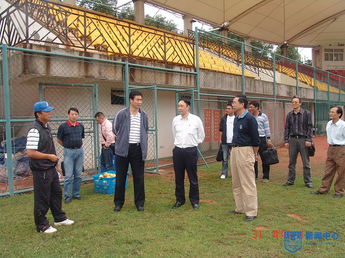 8月31日下午,江苏省体育局局长殷宝林带领竞技体育处处长邓伟先、副处长严小平,在我校副校长朱跃钊和体育部党政领导班子成员陪同下,前来江浦校区垒球场看望并亲切慰问了校江苏女子垒球队全体队员和教练员,一起观看了正在垒球场积极备战第十一届全国运动会的队伍训练情况。殷宝林局长分别向垒球队主教练宋秋元、领队王浩详细了解队伍备战第十一届全国运动会的近况,并找个别队员进行了交流和鼓励。
