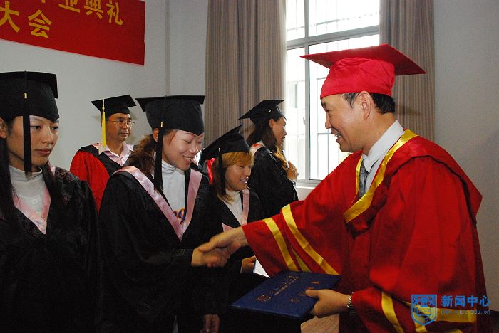 首先,经济管理学院党委副书记顾永东同志宣读了王兰等21名垒球队队员完成了工商管理专业教学计划规定的全部课程,准予毕业并获得管理学学士学位的决定,省体育局杨国庆副局长和朱跃钊副校长共同为垒球班毕业生颁发毕业证和学位证书。