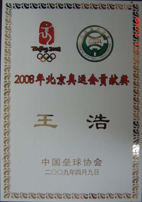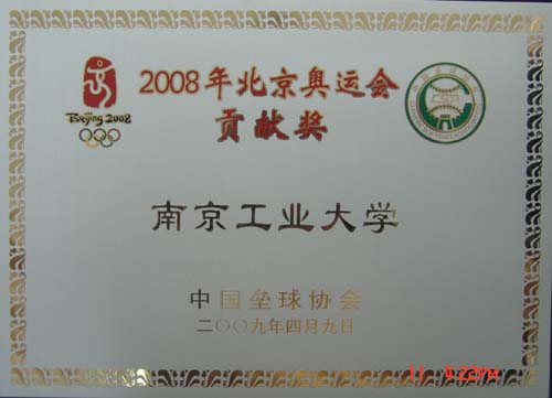 近日,我校收到了中国垒球协会邮寄来的二块奖牌,分别授予南京工业大学“2008年北京奥运会特别贡献奖”奖牌和授予体育部王浩同志“2008年北京奥运会特别贡献奖”,这再一次地肯定我校在培养体育竞技人才,积极探索“体教结合、省队校办”新模式过程中取得的成绩。