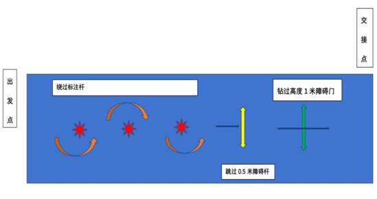 (1)按照规定路线,依次完成障碍物,如跑动过程中碰触移动障碍物,取消比赛资格。